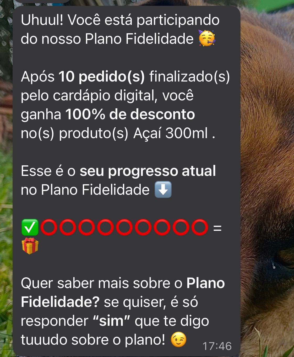 Quer dizer que eu só vou receber um açaí de 300 ml (o menor do portfolio deles) depois de 10 pedidos??