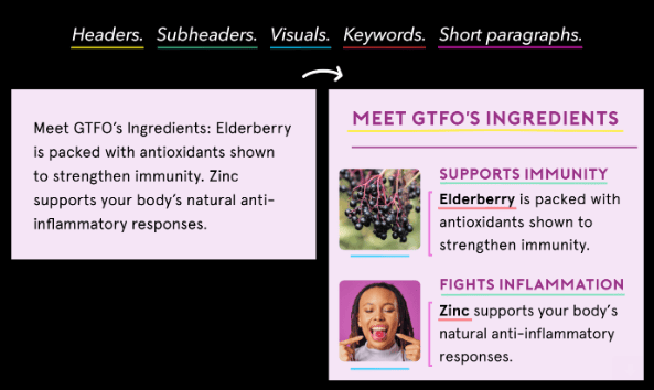 Percebe a mudança? À direita, é muito mais fácil de ler e associar o produto à qualidade